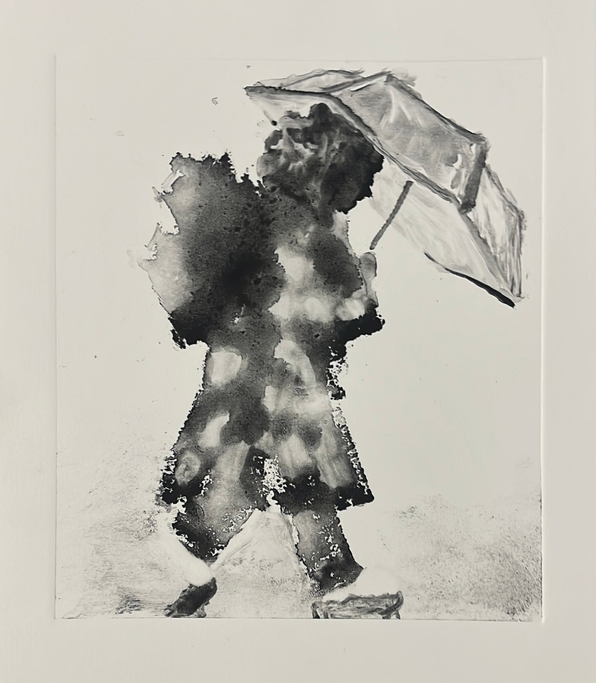 Night Walk depicts a moment when I left a museum in Aomori, Japan and saw a girl silhouetted with the snow behind her in a big coat with an umbrella against the storm. I managed to take a photo and this image has stuck with me as a lasting memory of our trip.